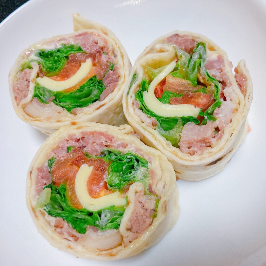 ベーコン・レタス・トマト・チーズをトルティーヤで巻いたラップサンド!